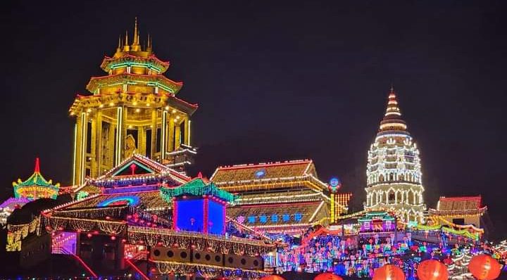 The annual lighting ceremony at the Kek Lok Si Temple in Ayer Itam was a spectacular scene as it was lit up with thousands of lights to mark the upcoming Chinese New Year.