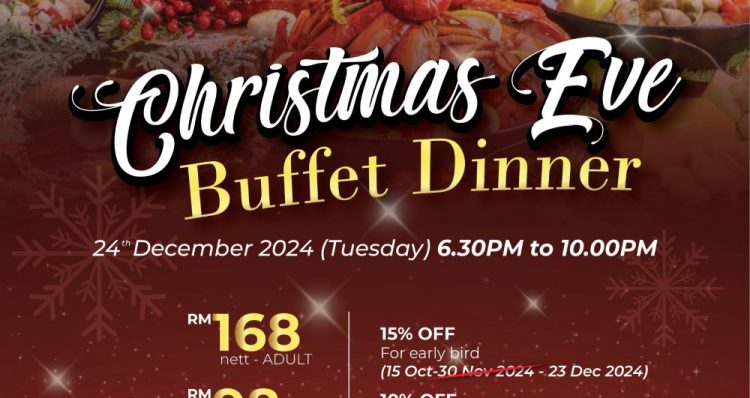 Their Christmas Eve Buffet Dinner is from 6:30 pm to 10pm at their Rice Garden Restaurant priced at RM168 Nett per adult, RM98 Nett per senior (60 years and above) and RM72 Nett per child (6 to 12 years old). A live band performance by The Elements will also fill the air.